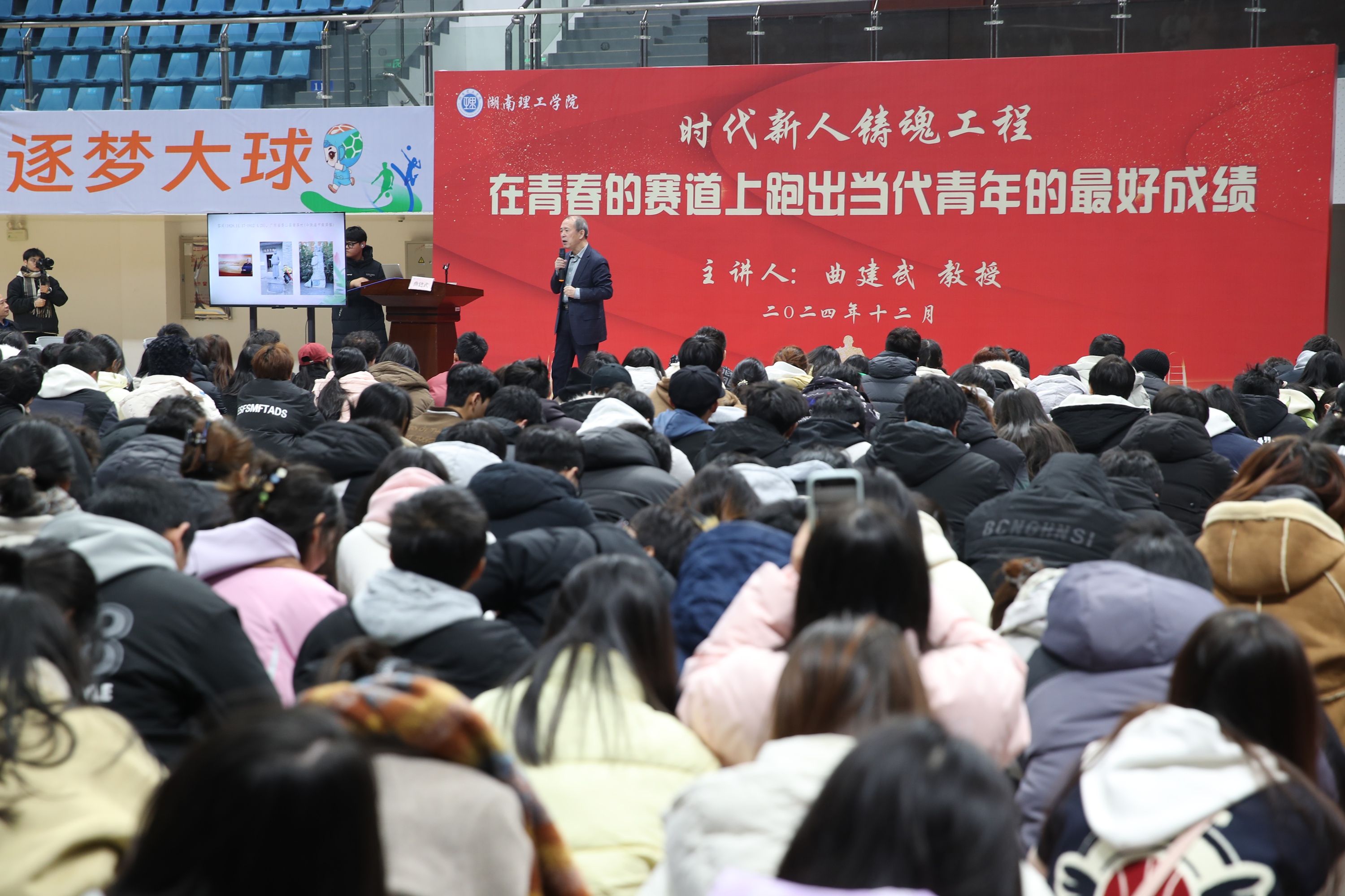 校园网讯 12月13日下午,“时代楷模”曲建武教授以“在青春的赛道上跑出当代青年的最好成绩”为题,在学校体育馆为师生带来一场理想信念专题报告会。曲建武结合自身丰富的工作经历和感悟,从热爱祖国、热爱中国共产党、坚定理想信念、刻苦学习、培养刚毅品格、培养良好品德、遵纪守法、强身健体等八个方面,深入浅出地阐释了理想信念的重要性,并鼓励同学们积极投身国家建设。曲建武强调,要不断牢记习近平总书记“不负韶华,不...