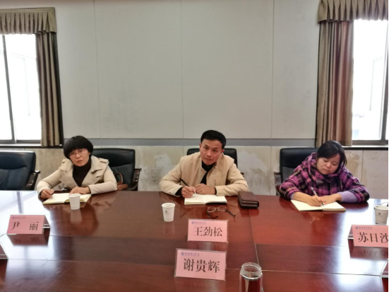 谢贵辉代表学校对王劲松一行的到来表示热烈欢迎。他简要介绍了我校基本情况,指出目前学校刚完成审核性评估工作,正致力于“创大”“申博”等工作;巡察办主任严忠炎向客人介绍了我校巡察工作的做法及取得的效果。