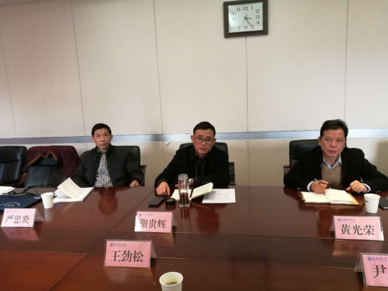 2017年11月20日下午,广西科技大学纪委副书记王劲松一行3 人来我校考察交流校内巡察工作,纪委书记谢贵辉在办公楼414会议室热情接待了客人,纪委副书记、监察处处长黄光荣主持。