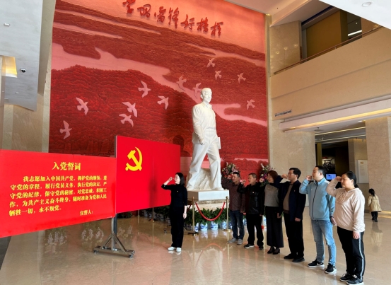 最后,在雷锋纪念馆大厅,全体党员同志在雷锋雕像前重温了入党誓词。
