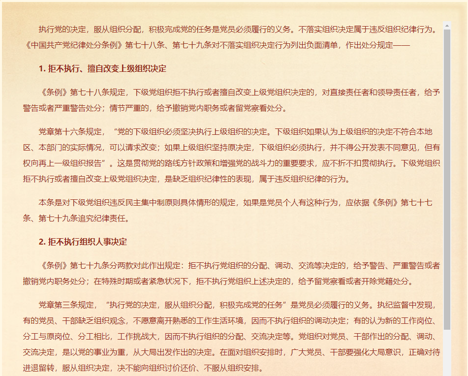 对不落实组织决定行为的处分规定